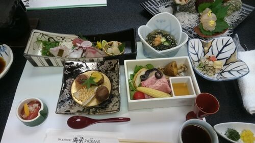 というわけでチェックインしました バタバタして写真撮れてないですが山の中にあるとても良い旅館でした 部屋からの景色ならあった 懐石料理 すぐ夕食だったので私服のまま夕食会場へ 会場といっても個室なんで静かに過ごせました これ全貌ではないんですよ…